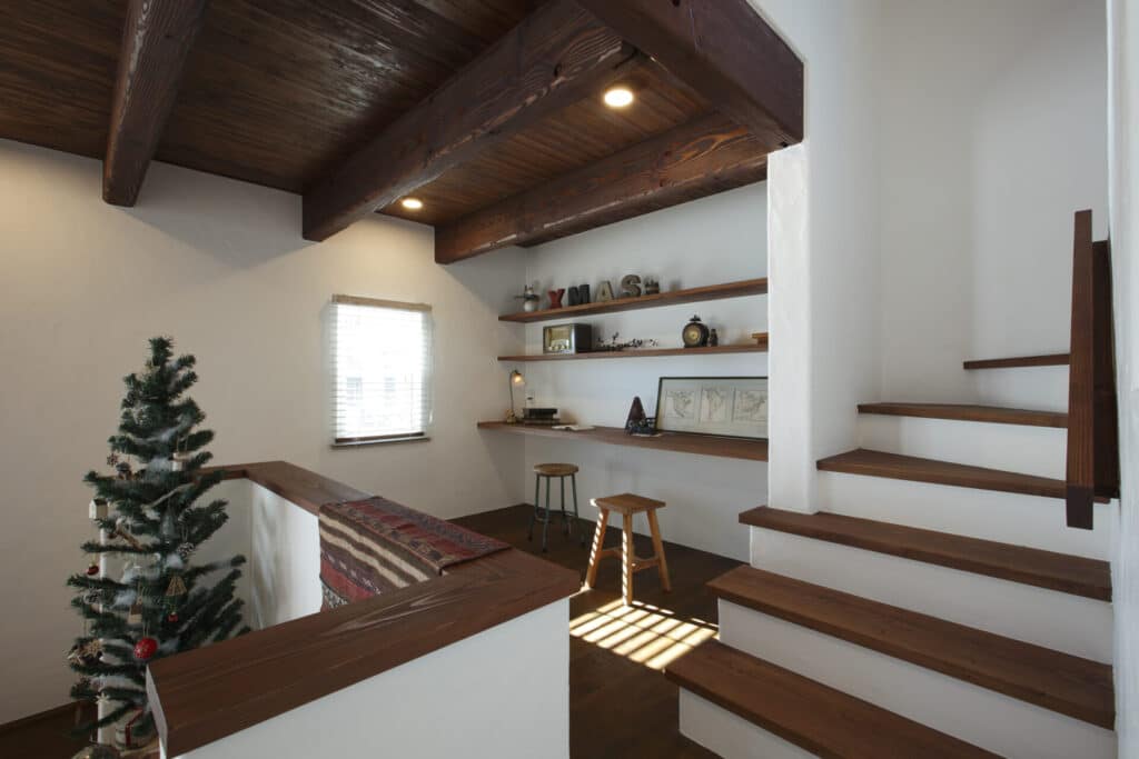 二階は居住部分。リバージュ。南欧の海沿いにある白を基調としたさわやかな家をイメージしています。