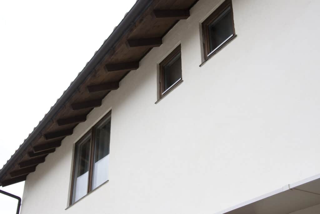 ◎外観は真っ白の漆喰仕上げ。