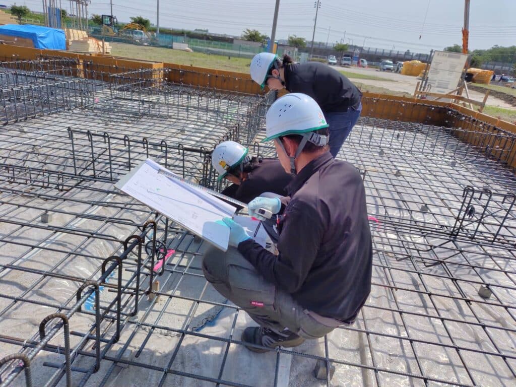 検査では配筋の仕方は間違っていないか、コンクリートのかぶり厚は確保できているかなどをチェックしていきます。