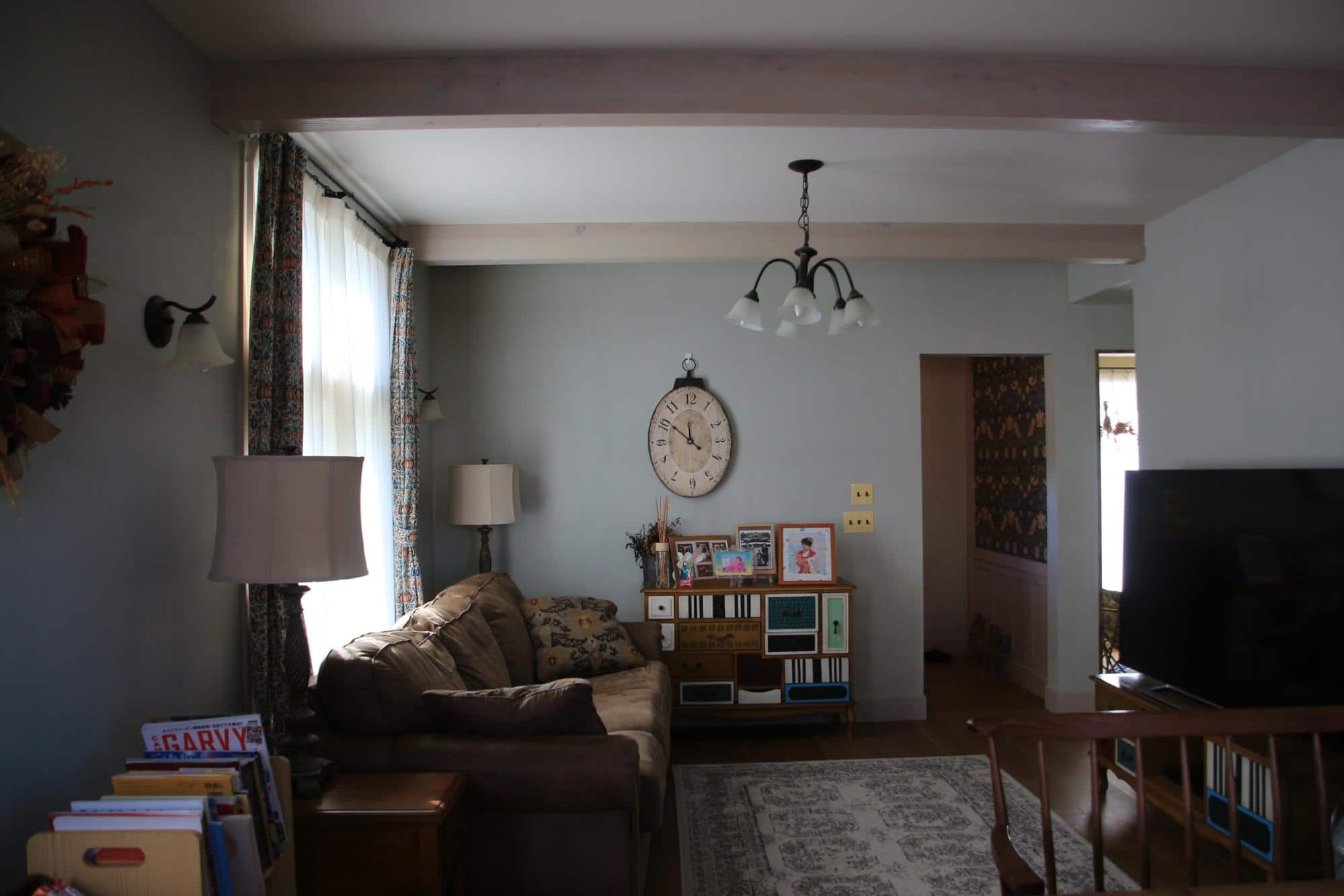 お気に入りの”アシュレイ”のソファーも、写真を撮ったら雑誌に載せられそうなくらい、いい光が当たるんですよ。